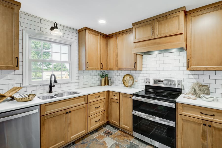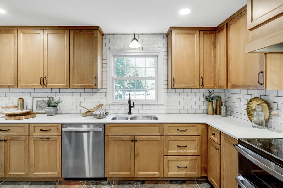 A dishwasher was added to support their daily cooking routine, and thoughtful cabinet design provided better organization throughout.