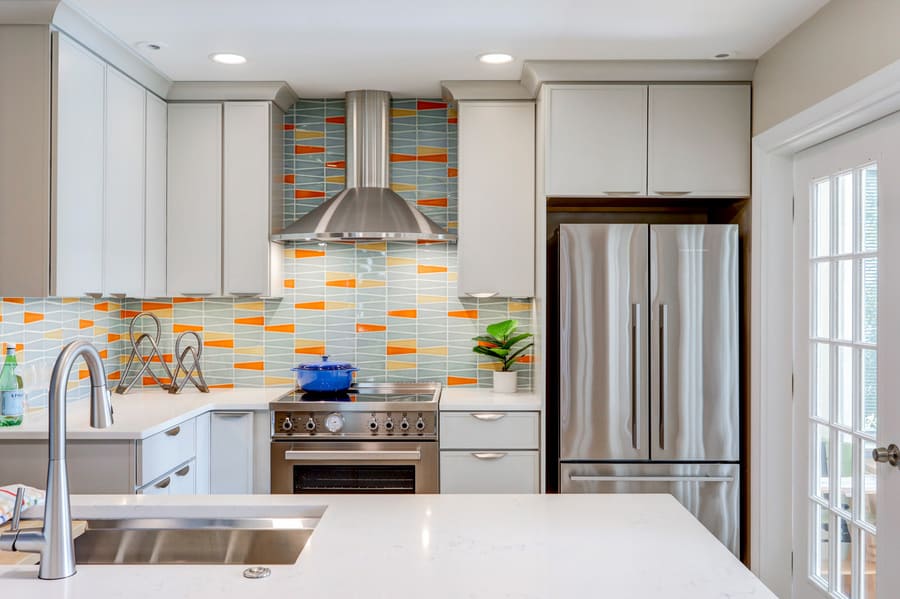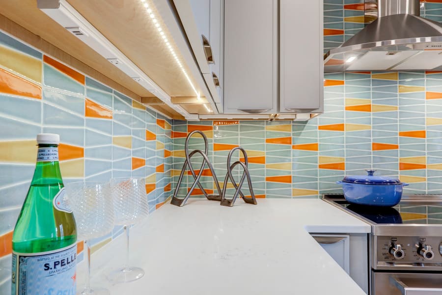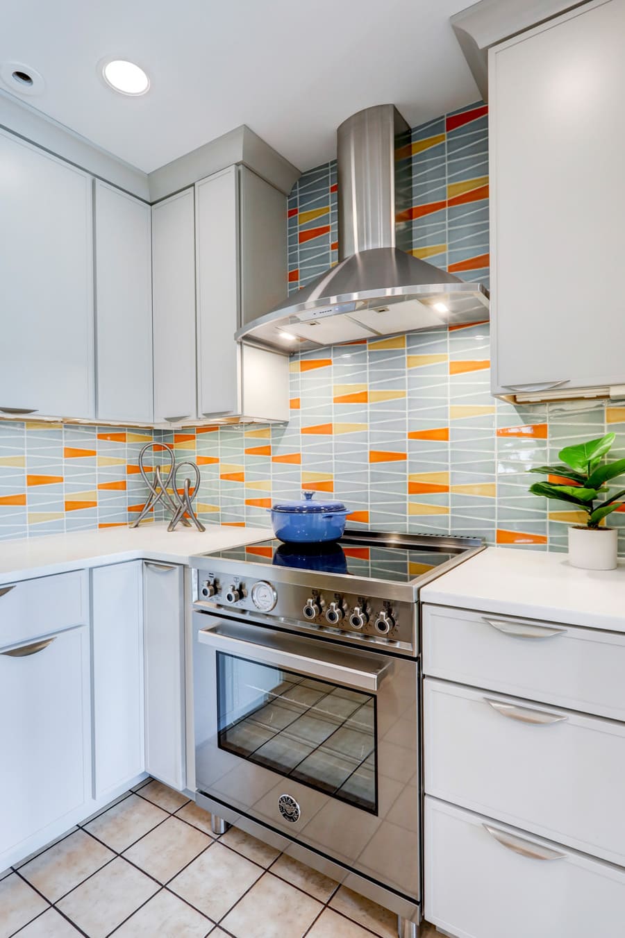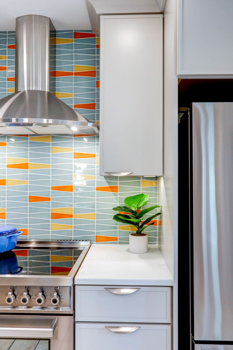 The result is a kitchen that marries the sleek lines and minimalist vibes of Mid-Century Modern with playful retro elements, infused with a contemporary twist. It's a beautiful blend of nostalgia and innovation, resulting in a visually compelling and inviting space.
